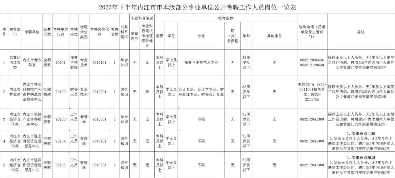公告原文:关于2023年下半年内江市市本级部分事业单位公开考聘工作人员的公告