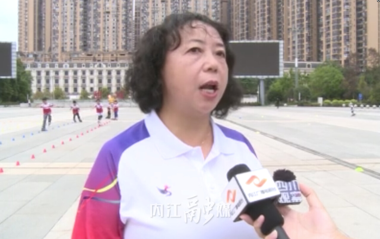 内江市轮滑队总教练樊霞:“培养吃苦耐劳的精神,因为这个项目有一个摔倒了再站起来,再摔倒再站起来,不停的往前面滑行,所以孩子在这上面不怕摔不怕吃苦,对自己也充满信心。”