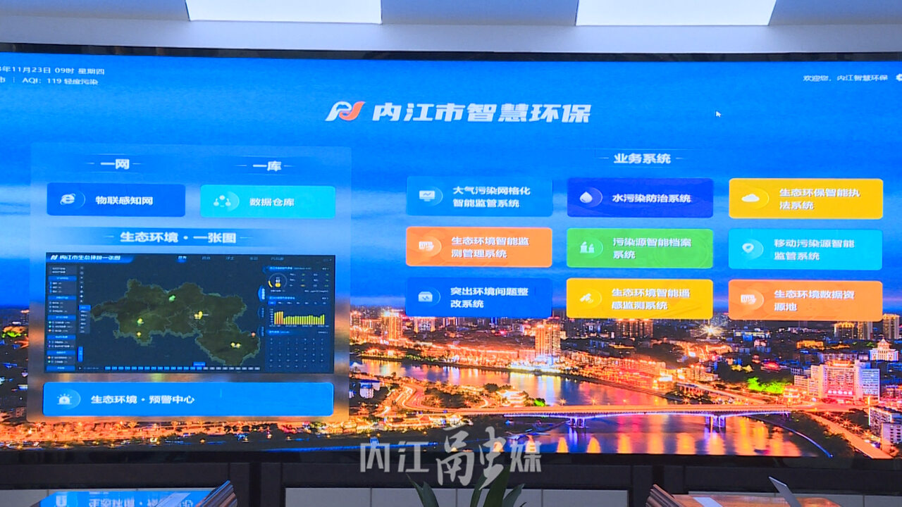 内江市环境信息中心主任郑小科介绍,智慧环保平台以环境感知物联网为基础,以“天地空一体”生态环境监测网络为手段,依托城市大脑底座赋能,建设生态环境一网、一库、一张图、一中心及N应用,通过对全市生态环境质量、重点污染源和生态环境状况的全覆盖监测、监管,从而实现生态环境综合决策科学化、生态环境监管精准化。