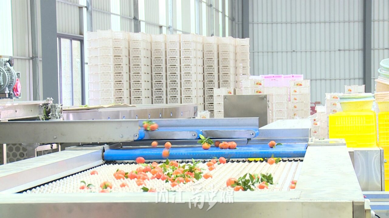 近日,记者在位于朝阳镇的市中区现代农业冷链物流中心看到,工人们正将成箱的新鲜沙糖桔送上分拣机,经过清洗、分拣和保鲜处理,再进行打包装箱,现场一片忙碌景象。