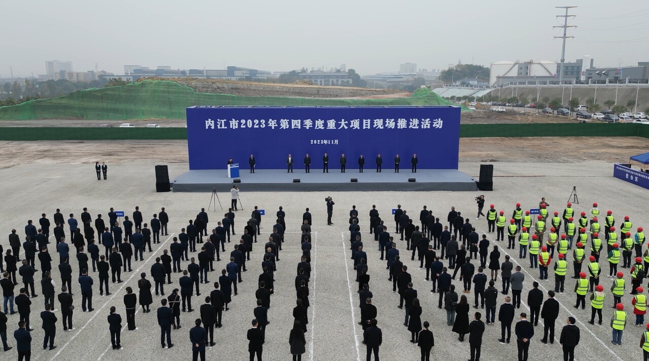 奋力冲刺四季度,打赢全年收官战。11月28日,内江市2023年第四季度重大项目现场推进活动在威远县半导体封装高端球形硅微粉新材料项目举行,集中推进114个重大项目,总投资434.96亿元,涵盖产业发展、基础设施、民生社会事业、生态环保等多个领域。