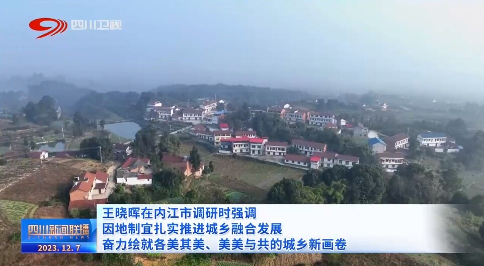 12月7日,省委书记、省人大常委会主任王晓晖前往内江市调研,宣讲省委十二届四次全会精神,督导主题教育开展情况,检查指导有关工作。他强调,要深入贯彻习近平总书记关于城乡融合发展重要指示精神,全面落实省委全会决策部署,坚持“抓好两端、畅通中间”的工作思路,因地制宜扎实推进城乡融合发展,在巴蜀大地奋力绘就各美其美、美美与共的城乡新画卷。