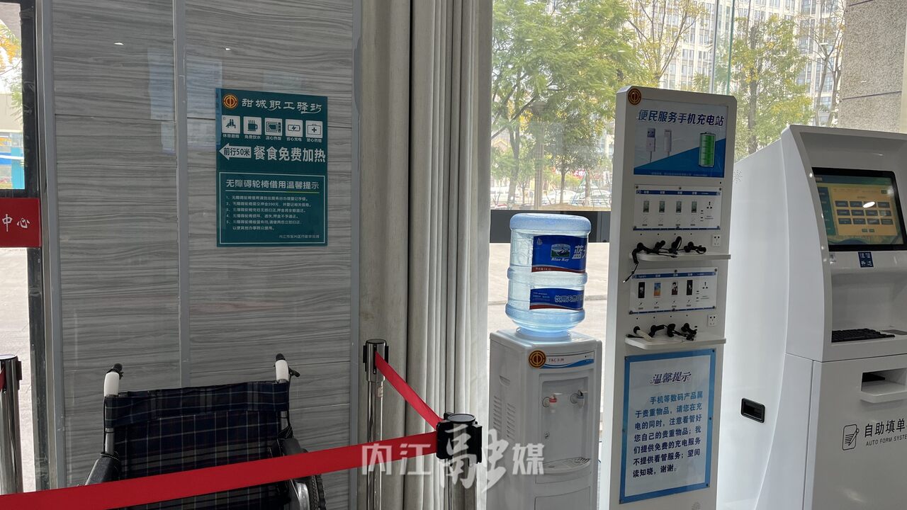 近日,记者来到位于东兴城区汉安大道东一段436号的“甜城职工驿站”内看到,服务人员热情的接待每一位来到站内的群众,驿站内配备有微波炉、应急药箱药品、充电站、雨伞雨衣、轮椅等基本物品,让服务站点成为户外劳动者“渴了喝喝水,累了歇歇脚,饭菜加加热”的温暖驿站。
