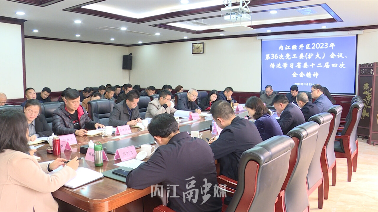 11月23日,内江经开区召开2023年第36次党工委(扩大)会议,传达学习省委十二届四次全会精神、市委常委(扩大)会议精神,研究部署内江经开区贯彻落实意见措施。