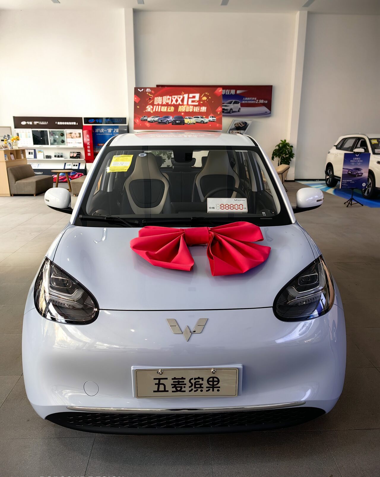 “我们的车性价比高,可以满足你不同需求。”店长吴波介绍,以五菱缤果为例,它的定位是小型豪华新能源车,细节把控到位,安全性和可靠性都有保证。