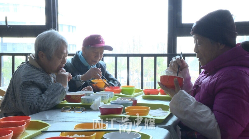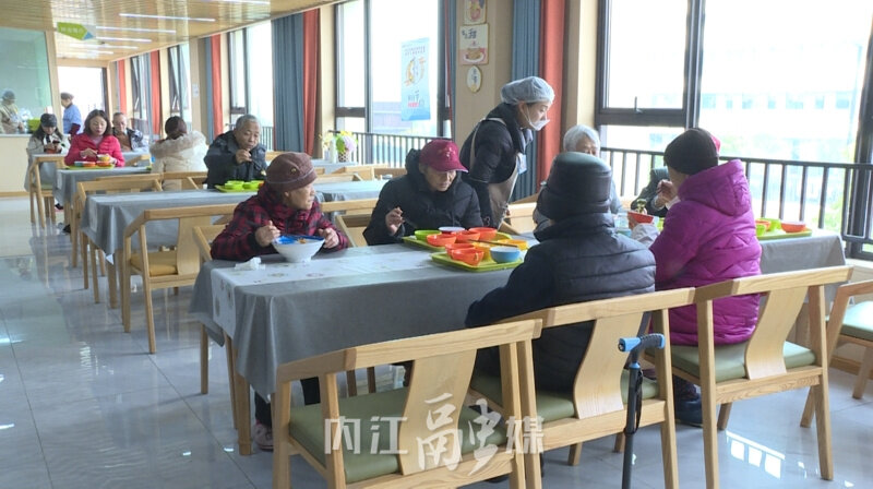 近日,记者来到内江高新区社区综合为老服务中心助餐中心看到,老人们正有序排队取餐,大家围坐在餐桌前,有说有笑地享受着美味的午餐。