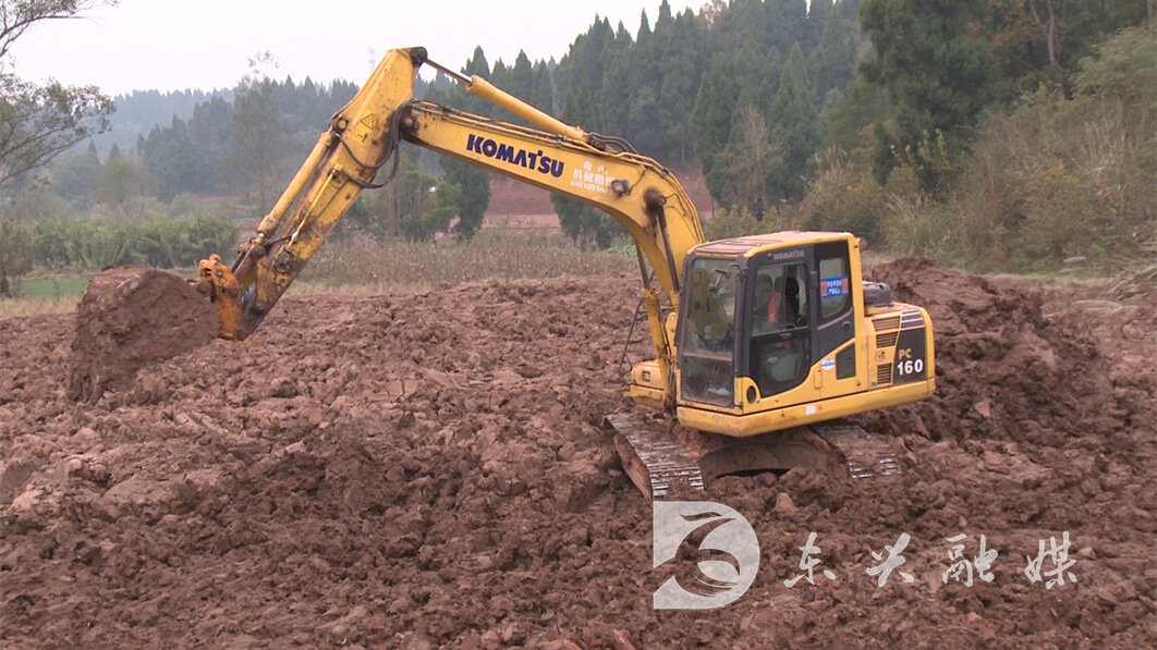 在位于内江市东兴区平坦镇十里村的东兴区乡村振兴项目一期土地整治施工现场,数台挖掘机正在对土地进行清表、平整以及修筑田埂。记者在现场了解到,该土地整治部分还将修建配套的水利设施,包括提灌站、水池、水渠、灌溉管道、山坪塘等。