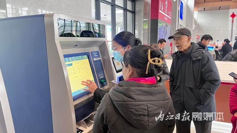 在资中西站售票大厅,不少资中市民前来迎接高铁进站。工作人员详细指导旅客如何购买车票、注册12306账号等,以便后续线上购票。