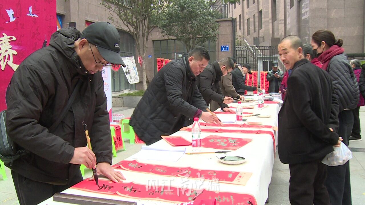 内江市新联会书画院秘书长余大江:“在这个新年即将到来之际,向我们的市民送上诚挚的问候和美好的祝愿,像这样的活动我们还会在我们内江其他街道、社区陆续举办。”