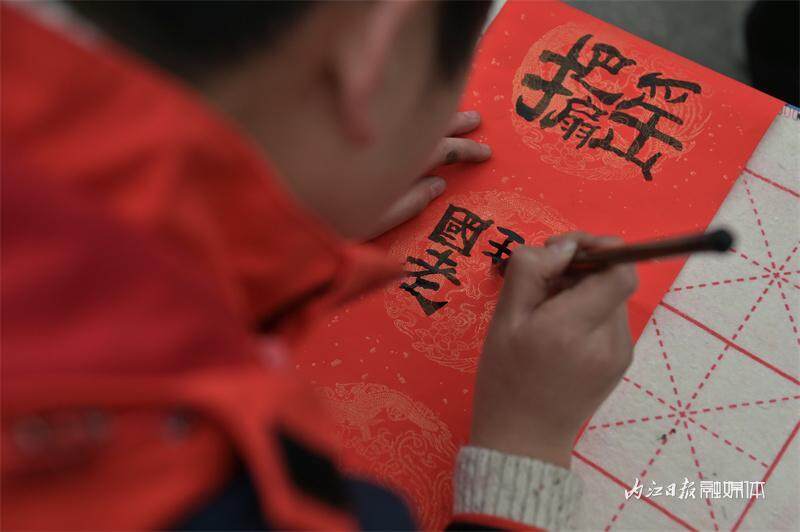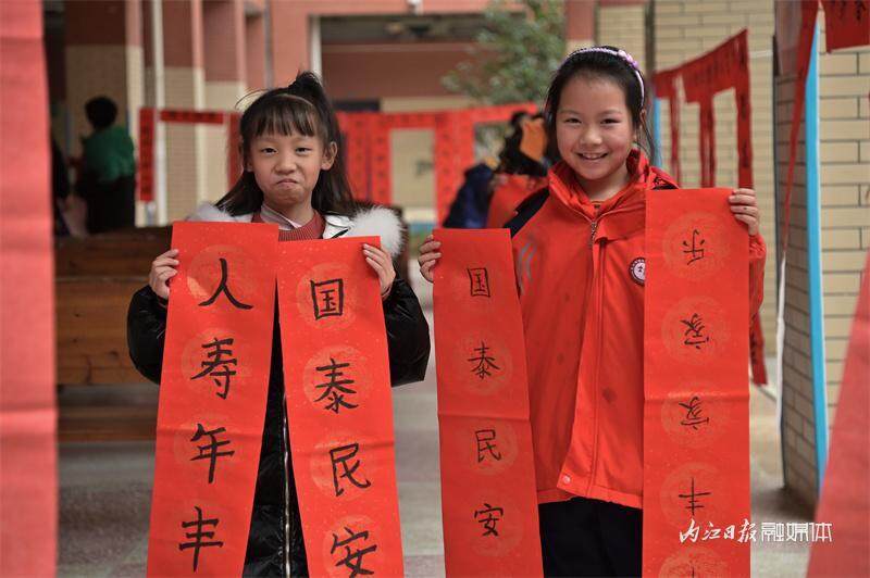 “民安国泰逢盛世;风调雨顺颂华年”“迎新春事事如意;接鸿福步步高升”“东风化雨山山翠;政策归心处处春”……活动中,大家书写着寓意美好的春联和福字。写好后,有的同学将春联赠送给老师,有的把春联悬挂在指定地点,红红的春联将校园装扮得喜气洋洋。