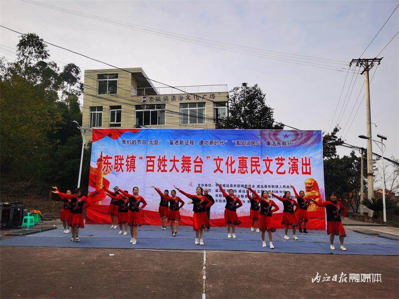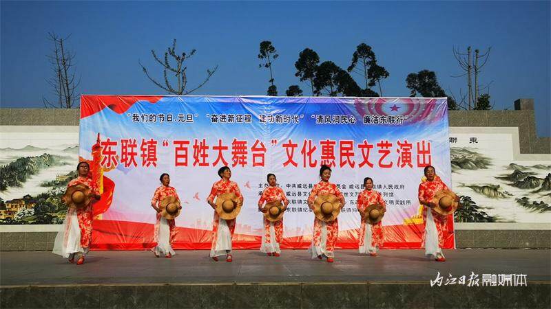 12月20日,“百姓大舞台”文化惠民文艺演出庆元旦活动在内江市威远县东联镇东盛和华乐社区举行。