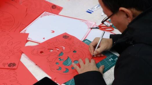 剪刀的一起一落,一深一浅,剪出来的是岁月,留下来的是文化。现场热闹非凡,桌上摆满了各种剪纸材料和工具。在老师的教学引导和鼓励下,大家手持红纸和剪刀,沿着轮廓线,仔细、耐心地完成了自己的剪纸作品。只见一张红纸,寥寥数剪后就变成了栩栩如生的图案,充满趣味的剪纸过程让大家兴趣盎然。