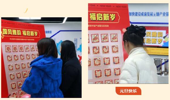 一元复始,万象更新!活动从“红包签到”开始,签到墙上的红包内有不同奖品,大家凭手气抽取,最后兑换神秘元旦礼物。