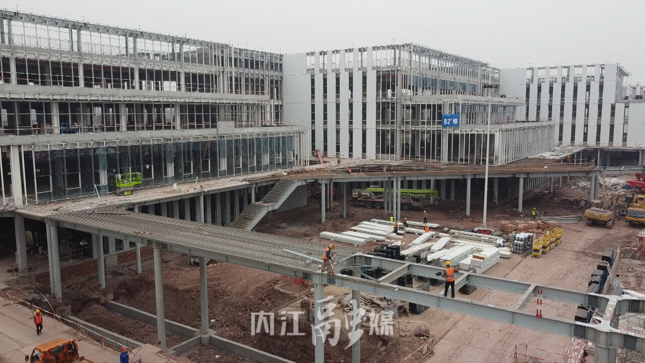 作为市级重点项目,内江高新区智能制造精密器件产业园主体结构和室内装饰装修施工已全部完成,目前正在加紧进行室外总平和外墙面装饰施工。