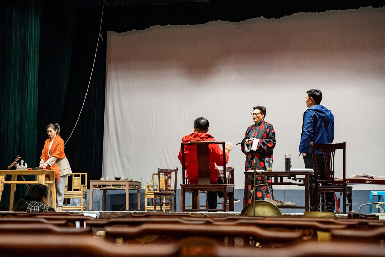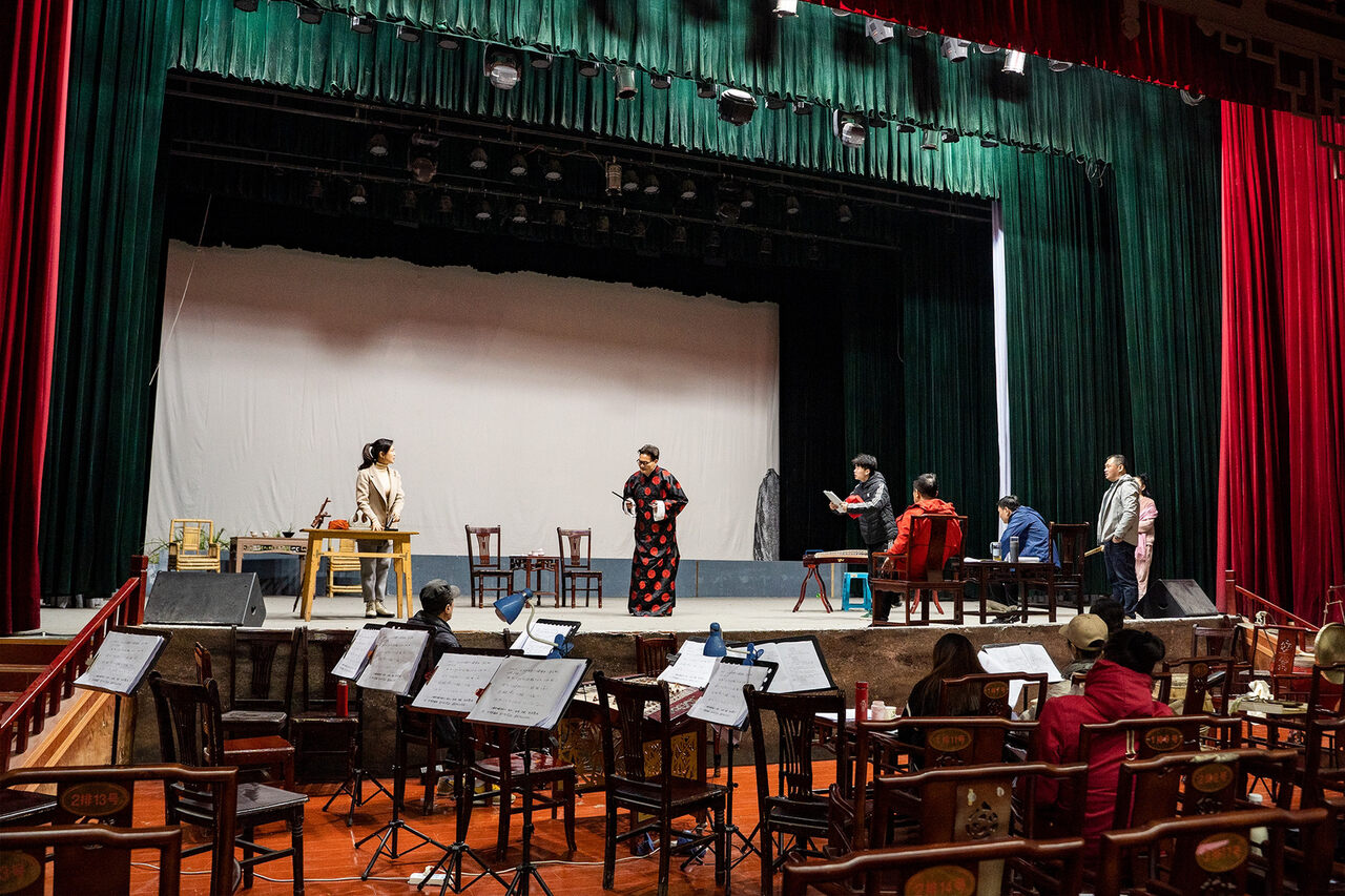 二胡声和鼓点在舞台交融,一段段台词踩着节拍响彻在剧场内部,舞台上演员们姿态优美而协调,打磨着一个个走位动作……3月25日,内江川剧团四川大剧院剧场内,新编大型现代川剧《大千世界》正在火热地排演中,该剧联排结束后预计将在五月初正式首演。