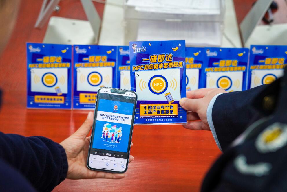 通过NFC手机碰一碰感应牌,如何实现税费政策一碰即达?“利用智能手机自带的NFC功能,纳税人缴费人只需通过手机碰触NFC感应牌,税费优惠政策、高频业务知识和热点信息等立即显示出来,甚至在手机熄屏、无网环境下也能实现税费宣传资料的读取。”隆昌市税务局办税服务厅负责人罗春介绍。“我们通过便捷智能的宣传,进一步推行‘非接触式’办税,逐步引导纳税人缴费人‘非必要不窗口’‘足不出户办业务’。”