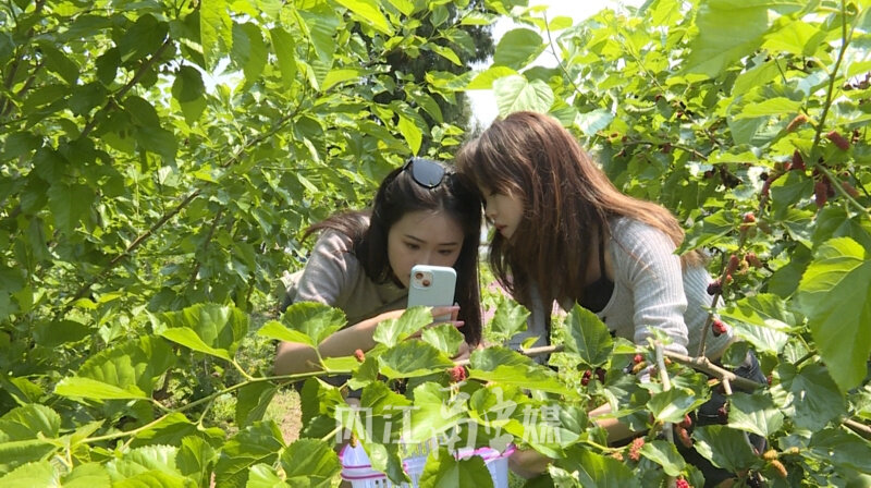 眼前是一眼望不到边的桑树林,手边是可以随摘随吃的桑葚果,脸上还能感受到不时拂过的和煦春风,这样的快乐和惬意让记者欲罢不能。在桑葚园里,有不少游客也约上家人和朋友慕名而来,拍照打卡、采摘和品尝桑葚,度过一段难忘的悠闲时光。