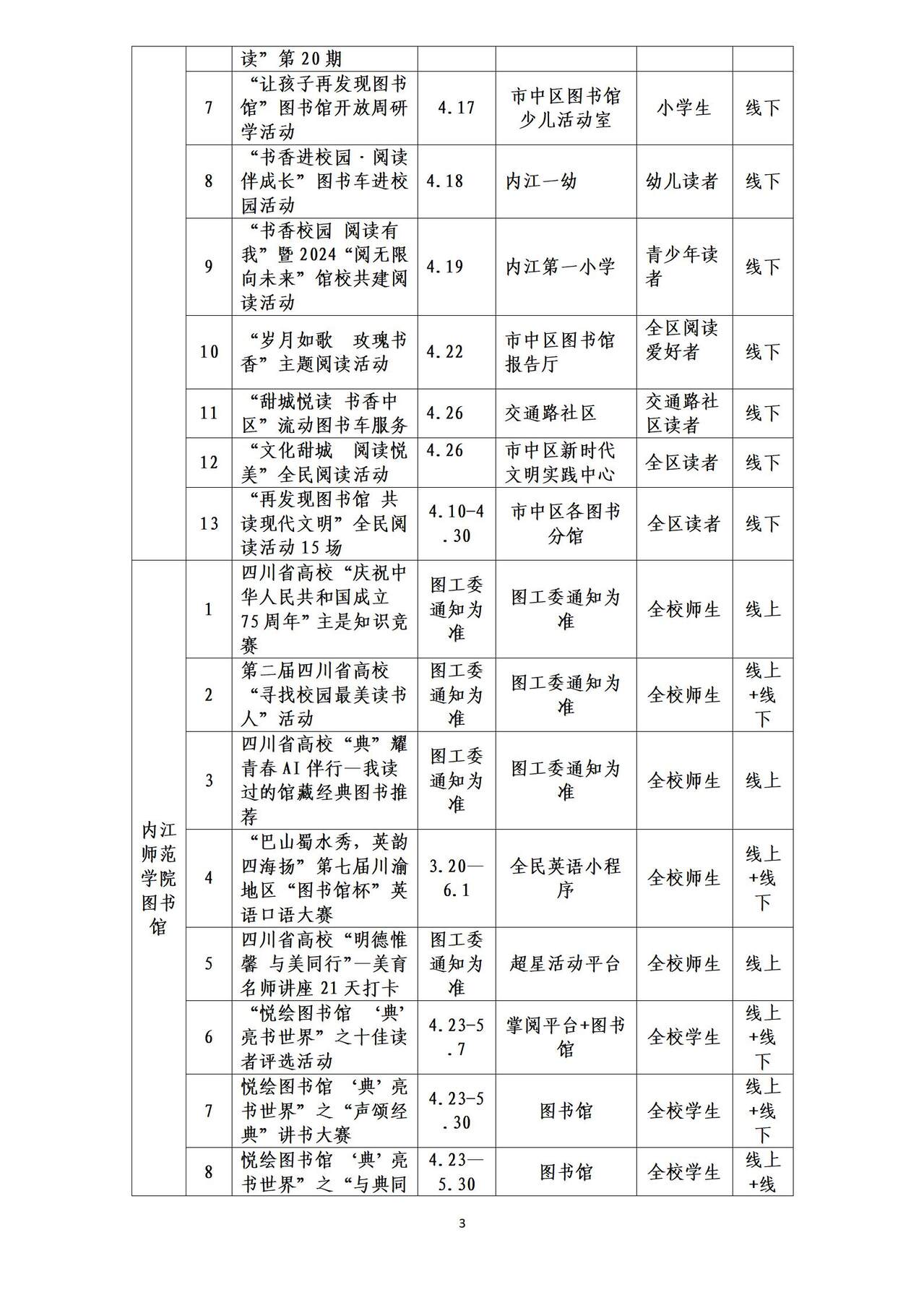 江粉儿从内江文化旅游获悉,4月初到5月底,内江市将举行2024年“4·23世界读书日”系列活动,具体安排如下。
