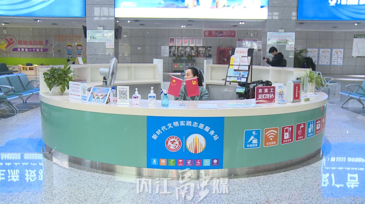 内江综合客运站新时代文明实践志愿服务点志愿者罗华告诉记者:”作为客运站的志愿者 我每天都值守在新时代文明实践志愿服务站 为旅客提供应急充电 饮用水 爱心雨具 爱心轮椅等志愿服务 并宣传文明知识 倡导旅客讲文明 守礼仪 现在旅客素质都越来越高了“。