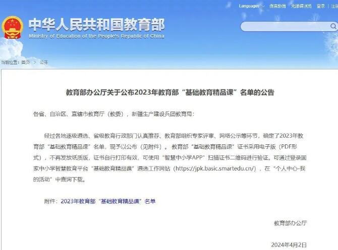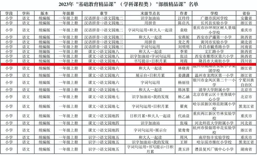 时间:2024-04-22 09:18:43 来源:我是隆昌近日,教育部公布《2023年“基础教育精品课”遴选部级精品课名单》,内江隆昌市两个作品获评教育部2023年“基础教育精品课”(学科课程类)“部级精品课”。