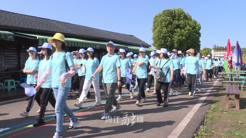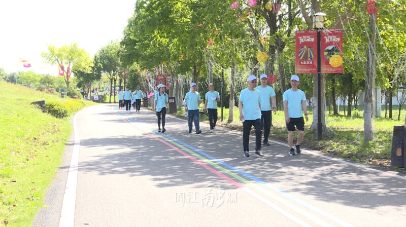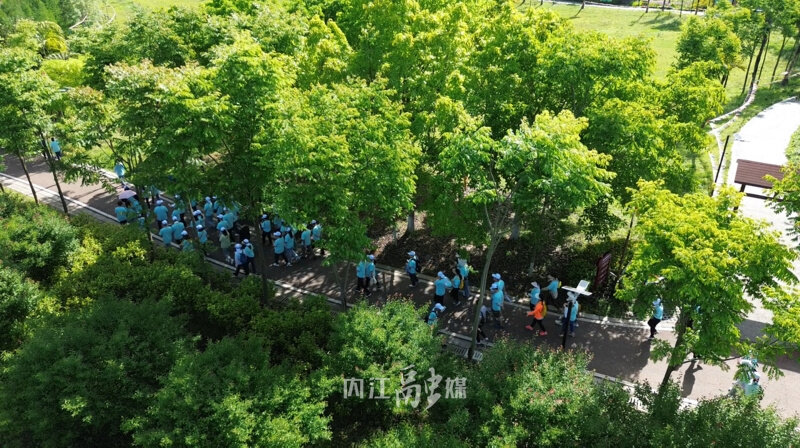 在奏唱国歌、进行热身运动后,随着发令枪响,徒步健身活动正式开始。据了解,本次活动主要由骑行和健步走运动组成,从景区“草原夜市”出发,途经“鸽子广场”“草原牧场”“黄鹤楼”等景点回到“南门”,徒步线路全程6公里。共有八百余名徒步健身爱好者参与其中,在享受大自然美景的同时,展现全民参与体育健身的热情。