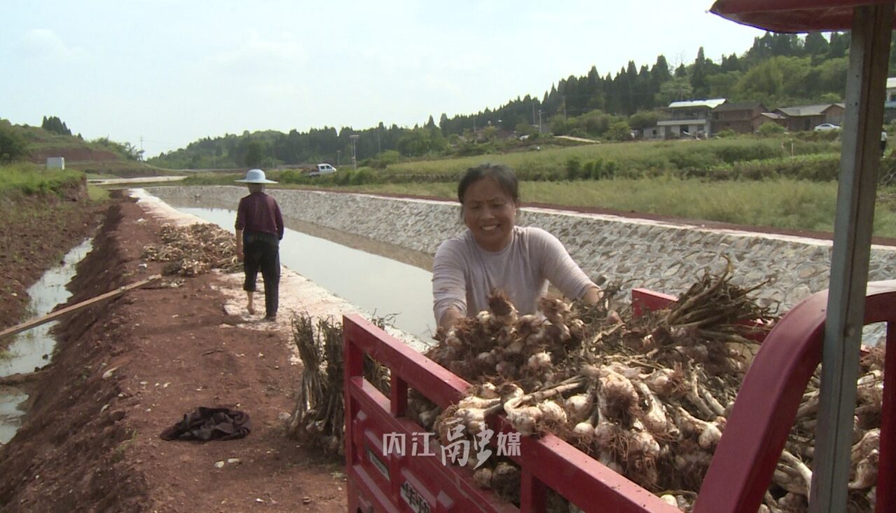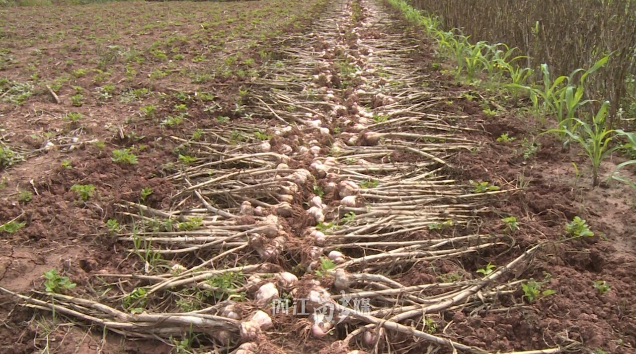 “我们这个村子基本上家家户户都种了这个紫皮大蒜,我们今年种了大概有30亩,一亩产出干蒜大概有两千斤左右。希望今年能够卖个好价钱。”村民何云发向记者说到。