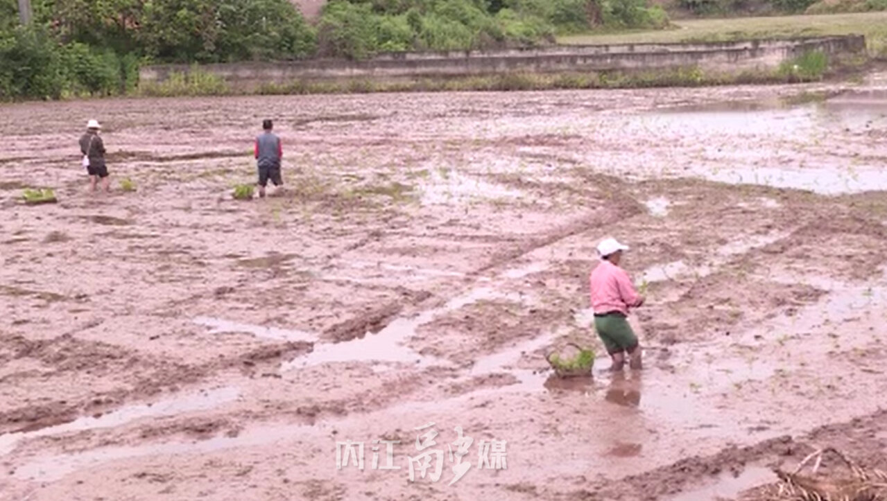 另一旁,一些农田由于形状不规则,面积较小而无法进行机械化耕作,只能组织人工进行插秧。