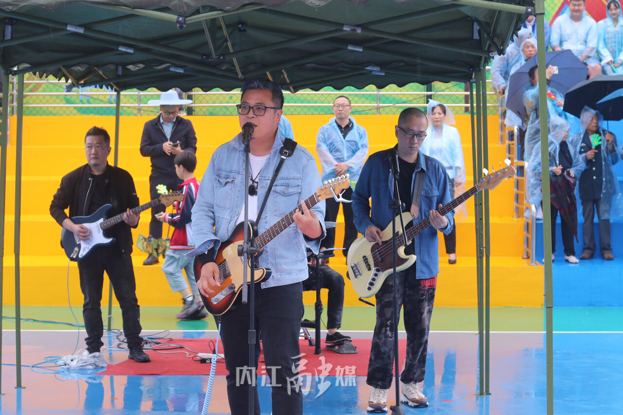 尽管天空中下着绵绵细雨,但大家的热情丝毫不减。活动在乐队充满激情的演唱中拉开帷幕,幼儿花式篮球、啦啦操等节目轮番上演。随后,全体参赛运动员依次进场,整齐列队,在观众的阵阵欢呼声中举行了开球仪式。