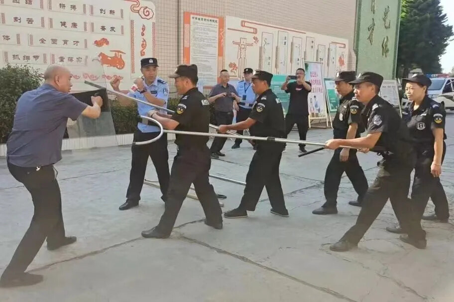 开展反恐防暴应急演练活动,向广大师生、安保人员详细讲解突发事件的处置方式、防暴器械的使用和学生如何进行应急疏散,并进行现场演示。旨在通过演练提升师生、安保人员对突发事件的应急处置能力,进一步巩固校园安防堡垒。