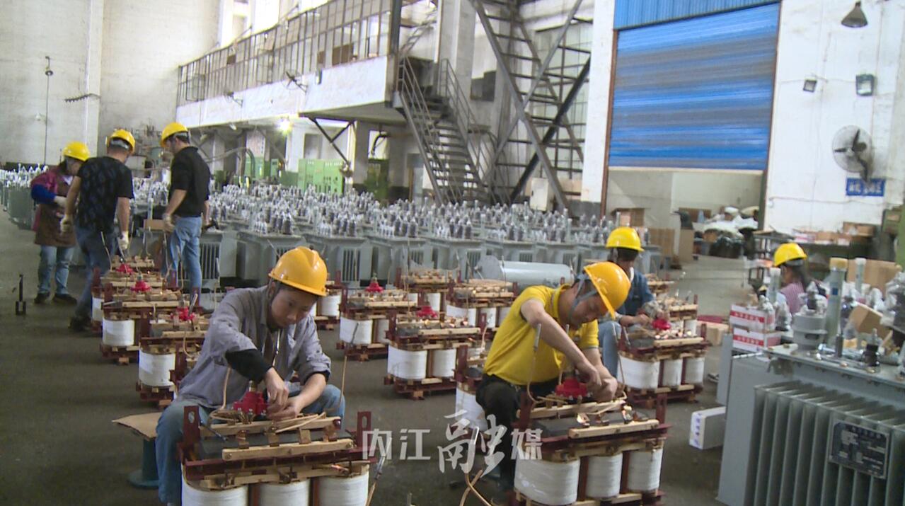 近日,记者在内江德华变压器有限责任公司的生产车间内看到,工人们正忙着进行变压器的组装、绕制、焊装等工作。在另一边,组装好的变压器等待出库运输,发往省内和湖北。