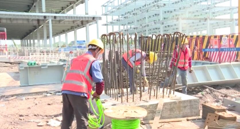 日前(5月21日),记者在白马园区的能斯特(内江)产业园项目看到,一栋栋钢架厂房已初具规模,工程车辆往来穿梭,塔吊在空中盘旋,配合着各个区域的工人们进行构件吊装作业,现场一派忙碌施工景象。