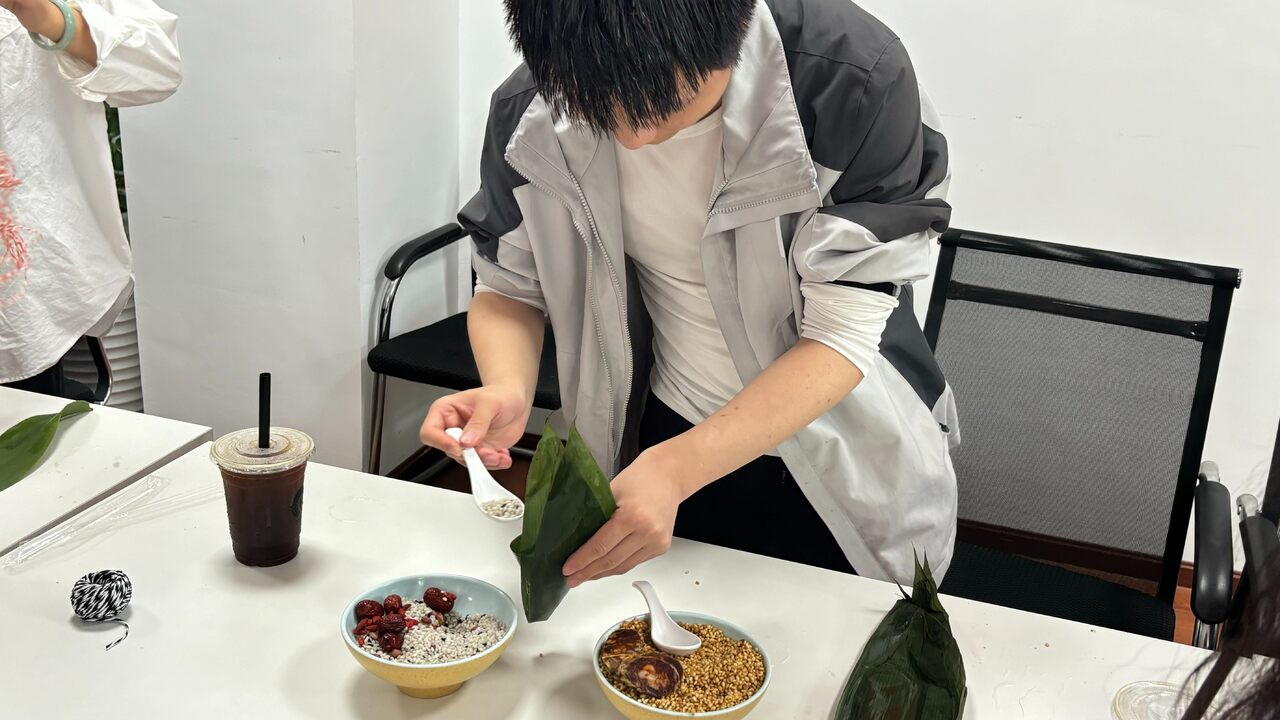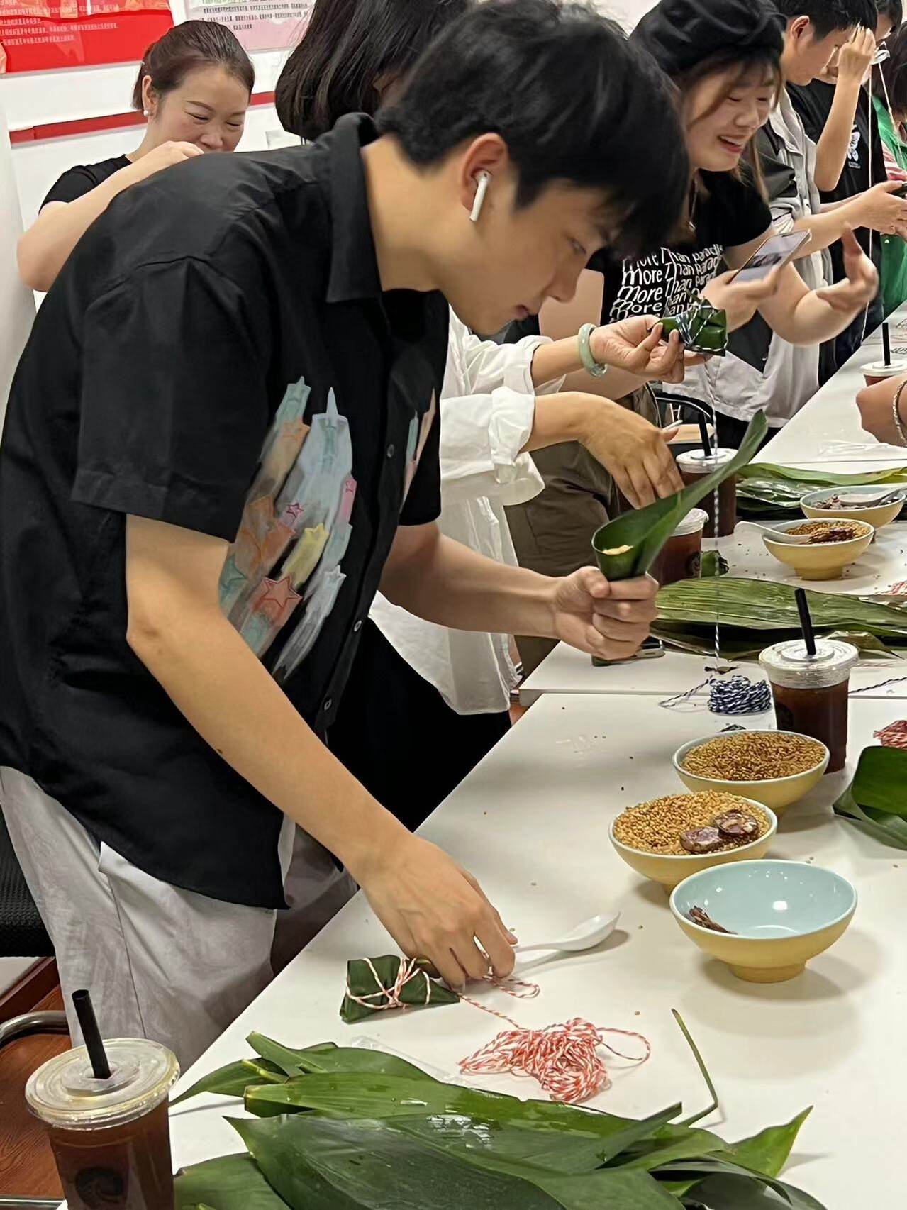 一年一端午、一岁一安康。在手工老师的简单教学后,趣味包粽子活动正式开始,捋粽叶、做漏斗、填糯米、压紧实、封口、扎捆。员工们相互学习、相互探讨,从陌生到熟悉、从匆忙到熟练,很快掌握了包粽子的技巧,不断精进手中粽子的造型,活动现场一片欢声笑语、其乐融融。