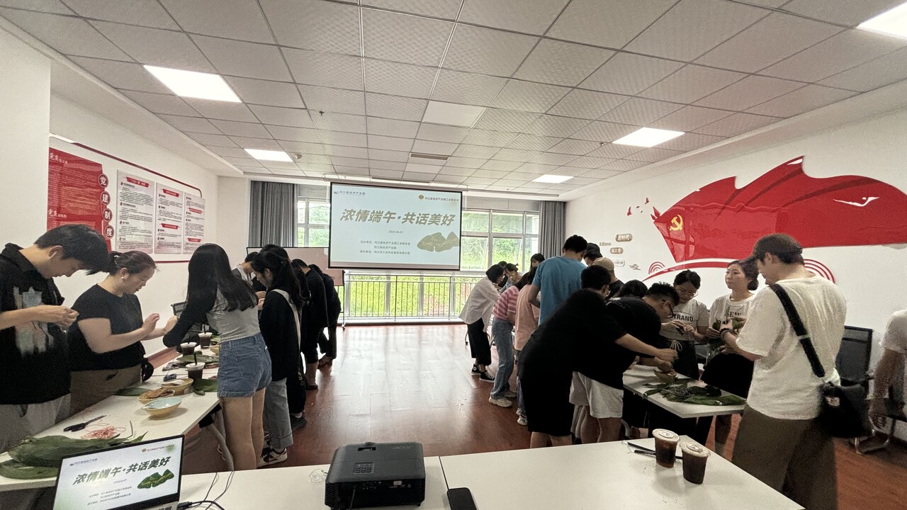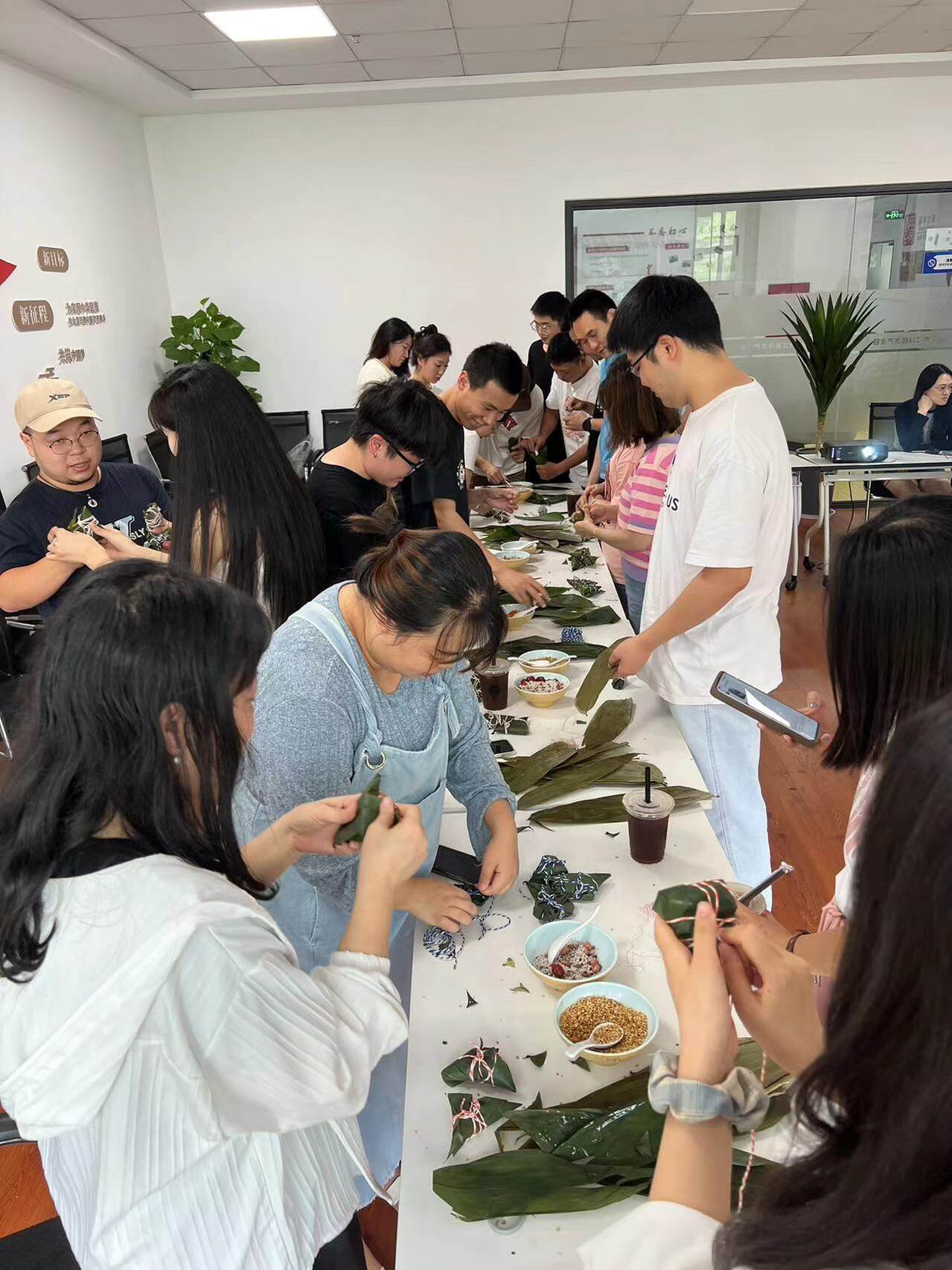 一年一端午、一岁一安康。在手工老师的简单教学后,趣味包粽子活动正式开始,捋粽叶、做漏斗、填糯米、压紧实、封口、扎捆。员工们相互学习、相互探讨,从陌生到熟悉、从匆忙到熟练,很快掌握了包粽子的技巧,不断精进手中粽子的造型,活动现场一片欢声笑语、其乐融融。