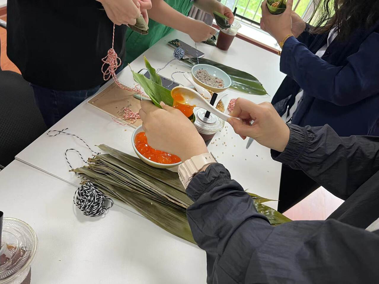 一张张翠绿的粽叶,一盆盆新鲜的糯米,在大家灵巧的手中变成了一个个有棱有角的粽子。看着自己亲手包制的粽子,大家喜笑颜开、收获满满,通过手工制作充分体会到了中华传统文化悠久的历史文化和丰富的内涵。