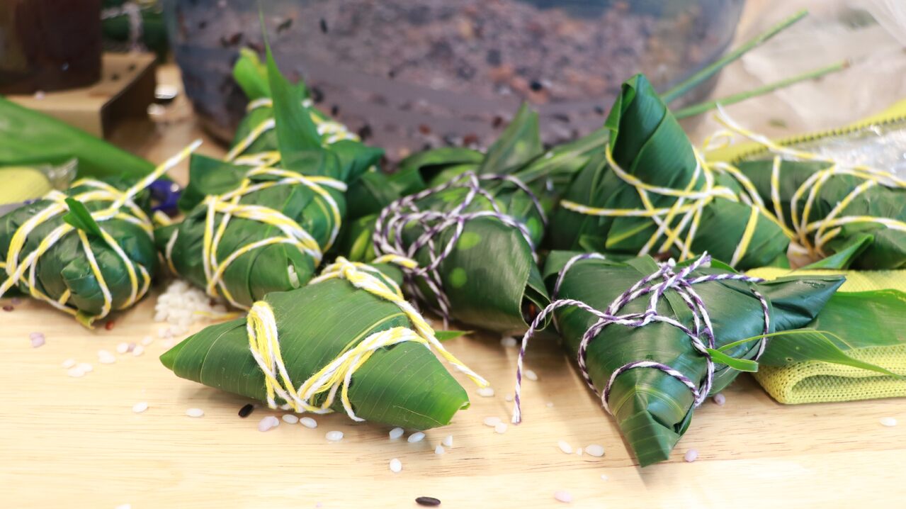 在手工制作环节,特约讲师张雪现场指导,手把手教员工包粽子的相关技巧,并重点讲述了包粽子相关步骤和粽叶捆绑细节。大家纷纷拿起手中的工具和食材,从展开粽叶到加入食材,从粽叶折叠到粽子捆绑......整个过程充满着欢乐的气氛。不一会儿,一个个立体精致的粽子就巧妙的完成,员工们拎着自己亲手制作的粽子,相互展示,脸上绽放着满足的笑容。小小的粽子,不仅传递着节日的祝福,还承载着丰富的传统文化内涵。