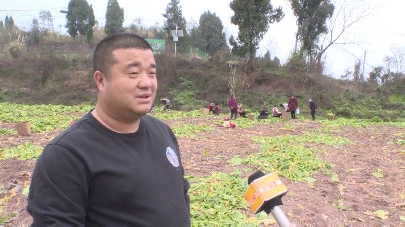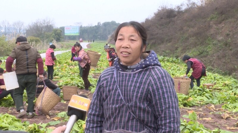 内江高新区高桥街道跳墩社区党支部书记李洪良介绍道,“今年我们榨菜品种好,产量高,产量有望突破100吨,可实现收入6万元。这几天我们每天组织100余名人员采收,然后紧接着我们还要加紧打田,种植向日葵,为葵花节打好基础。”