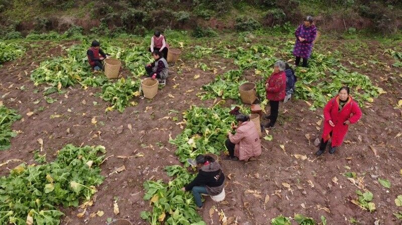 榨菜丰收不仅带来了可观的经济效益,也为当地村民提供了居家就业机会。在村集体的带动下,许多村民实现了家门口就业,收入水平显著提高。