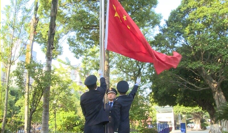 上午9点整,升旗仪式正式开始。伴随着国歌声,五星红旗冉冉升起,全体干部庄严肃立,面向国旗行注目礼,以昂扬的斗志迎接国庆假期后的第一个工作日。