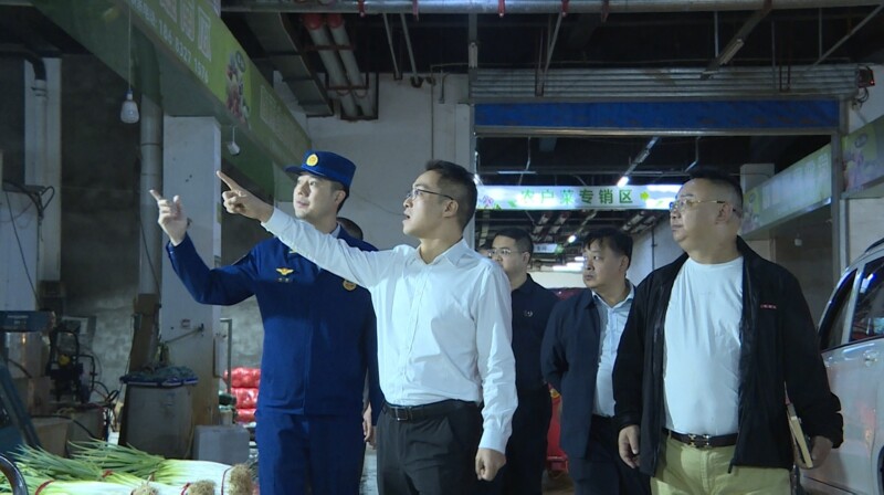 在综合批发市场,检查组聚焦临时搭建、违规搭建区域,严格检查其是否符合消防间距要求,建材是否为不燃材料,是否占用疏散通道与消防车道,是否存在私拉电线、违规搭电行为,环境卫生管理是否到位。