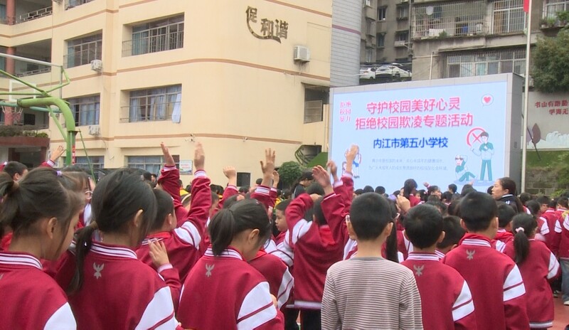 内江市第五小学学生李俊谦告诉记者:“通过这次的活动,我知道了校园欺凌,我以后不会校园欺凌,当有被校园欺凌的时候,我会把同学扶起来,并告诉老师和家长。”