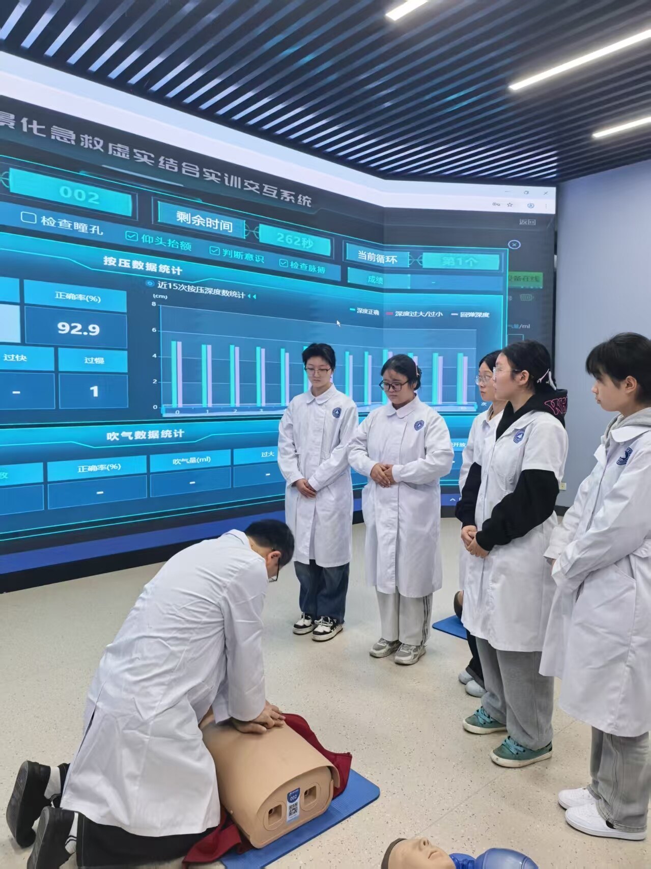 “3号同学按压力度不够,需要再加深。”靠着实时反馈,张文君当场纠正操作偏差。课程结束后,张文君调出综合数据逐一点评,曾经靠“脑补”的急救教学,现在连“错在哪”“怎么改”都能看得见、摸得着。“技能掌握效率明显提高,这就是沉浸式、交互式教学的魔力”,张文君感慨说。