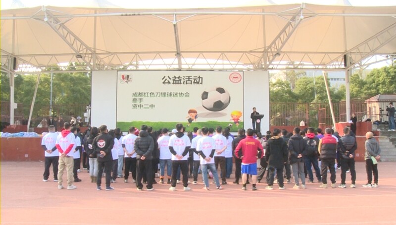 12月17日下午,一场暖意融融的体育用品捐赠仪式在资中二中足球场举行。成都红色刀锋球迷协会的代表们来到校园,向该校足球队赠送了包括专业球衣、足球、球鞋、护腿板及对抗背心在内的一批运动装备,以实际行动支持基层校园足球发展。