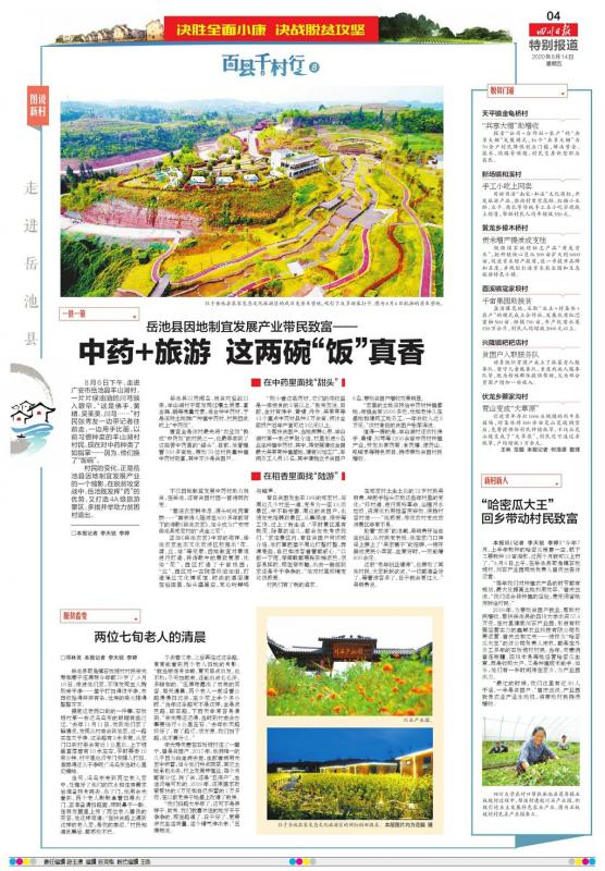村民的变化,正是岳池县因地制宜发展产业的一个缩影。在脱贫攻坚战中,岳池既发挥“药”的优势,又打造4A级旅游景区,多措并举助力贫困村退出。
