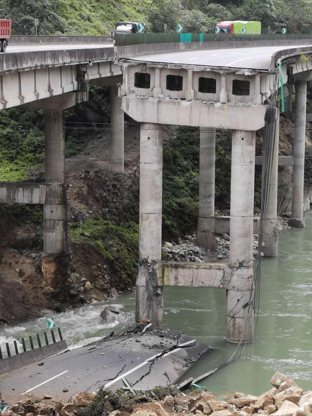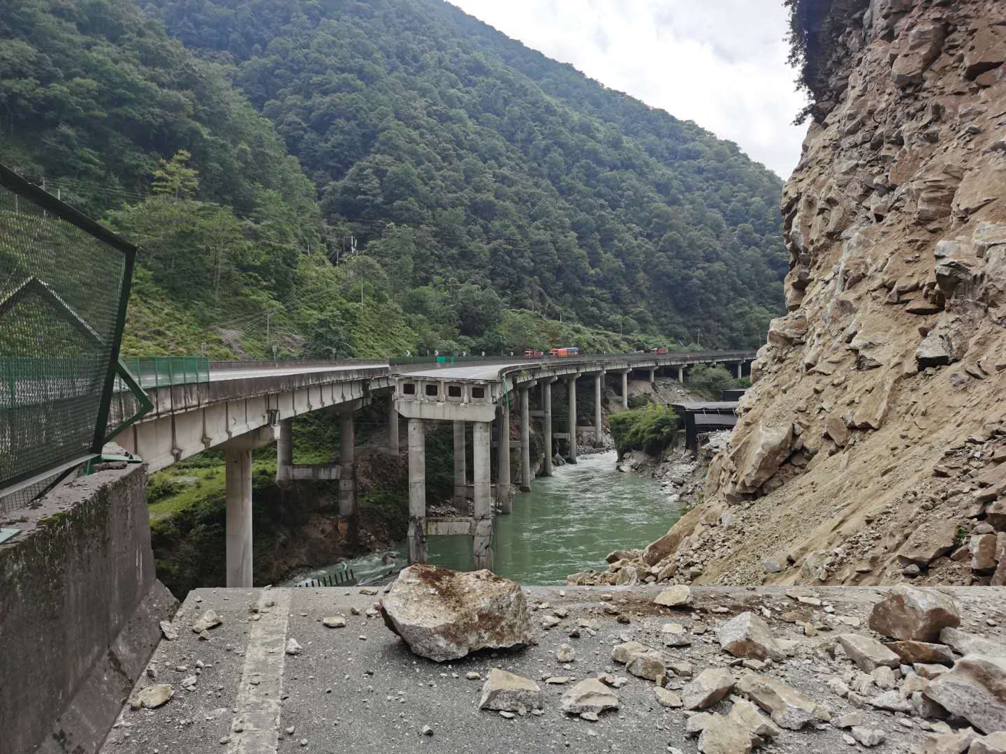 9月20日12时,G5京昆高速雅西段(雅西高速)成都—西昌方向(石棉至栗子坪段)姚河坝隧道出口200米处,山体垮塌致桥面断裂,道路中断。