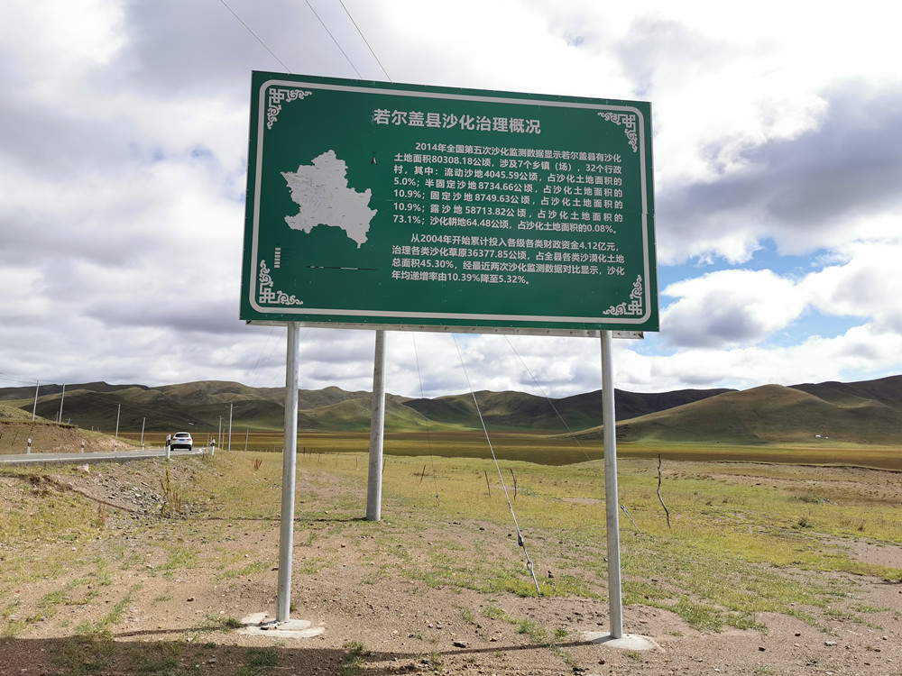 记者了解到,面对严峻的草原沙化形势,若尔盖自上世纪六七十年代开始沙化治理,自2004年开始“四川省若尔盖县全国防沙治沙综合示范区”建设项目以来,相继实施了省级防沙治沙、川西藏区生态保护与建设沙化治理、国家重点生态功能区转移支付沙化治理、植被恢复等政府性投资建设工程,截至2019年底,先后累计投入资金3.7亿元,治理了各类沙化土地2.7万公顷,占全县各类沙漠化土地总面积33.62% ,目前全县沙化程度呈现“总体好转、局部可控”的良好趋势。