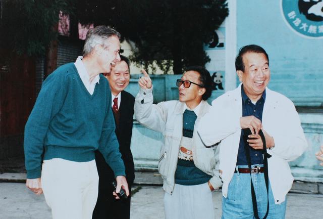 第二届成都熊猫节,邱笑秋与大熊猫专家胡锦矗、潘文石和夏勒重逢