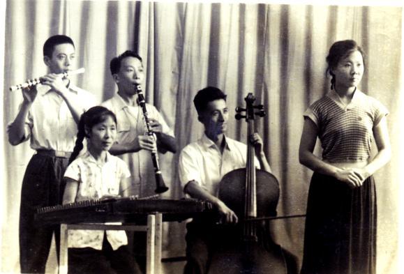 邱笑秋(后排右一)在吹单簧管
