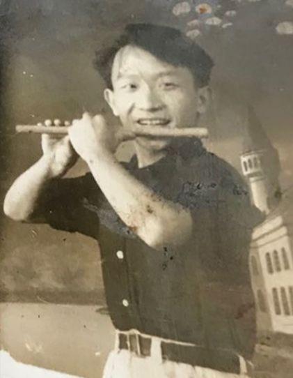 邱笑秋在吹竹笛