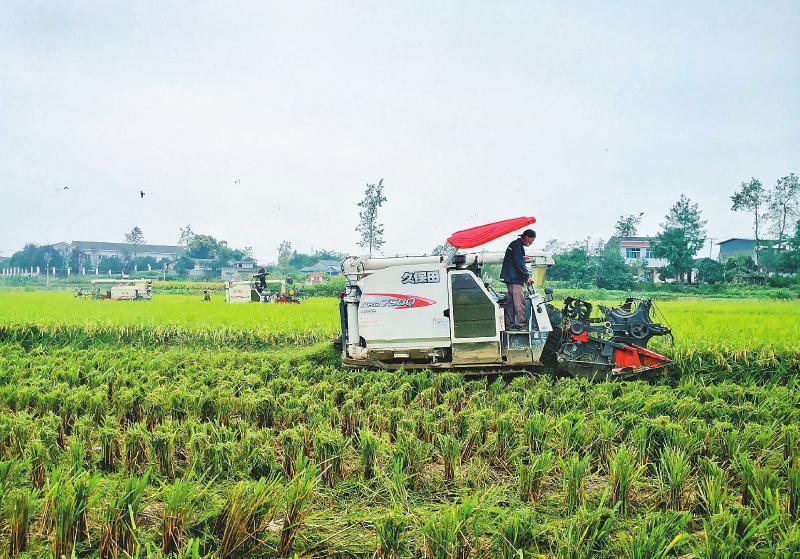 十月七日,绵阳市安州区黄土镇民生村村民在抢收水稻。张祖强摄(视觉四川)