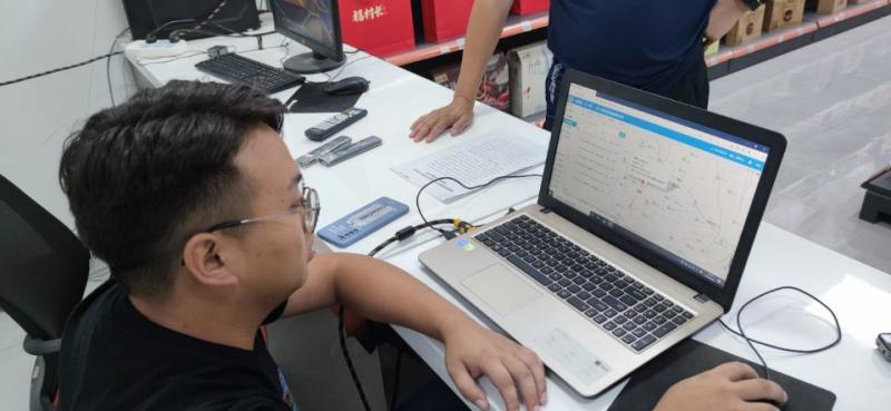 喜德县电商物流中心,仓储员沙剑在电脑平台上查看物流运输车轨迹。